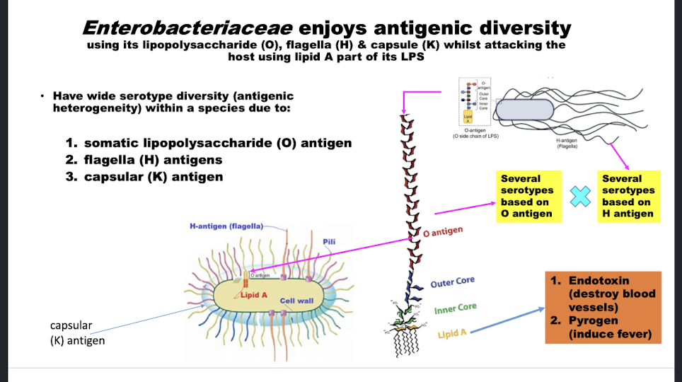 What are the different things that lead to antigenic diversity with enterobacteriaceae?
