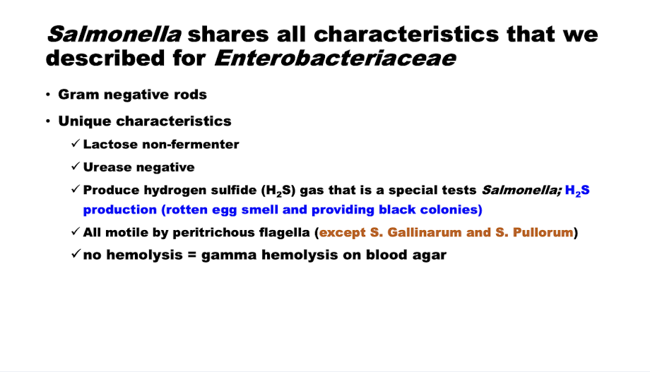 What are the major characteristics of salmonella?