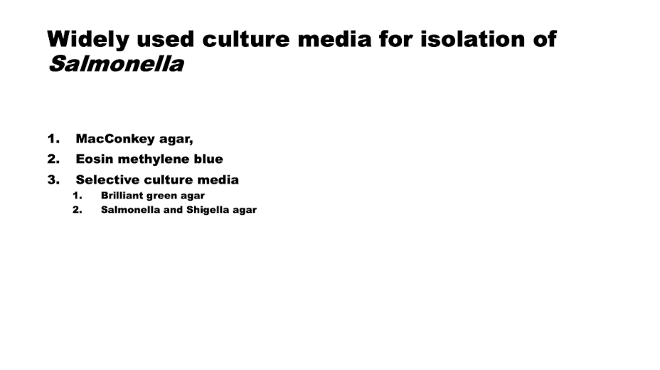 What culture media is used often for Salmonellas?