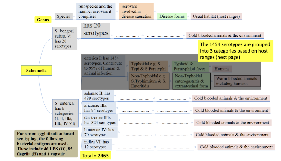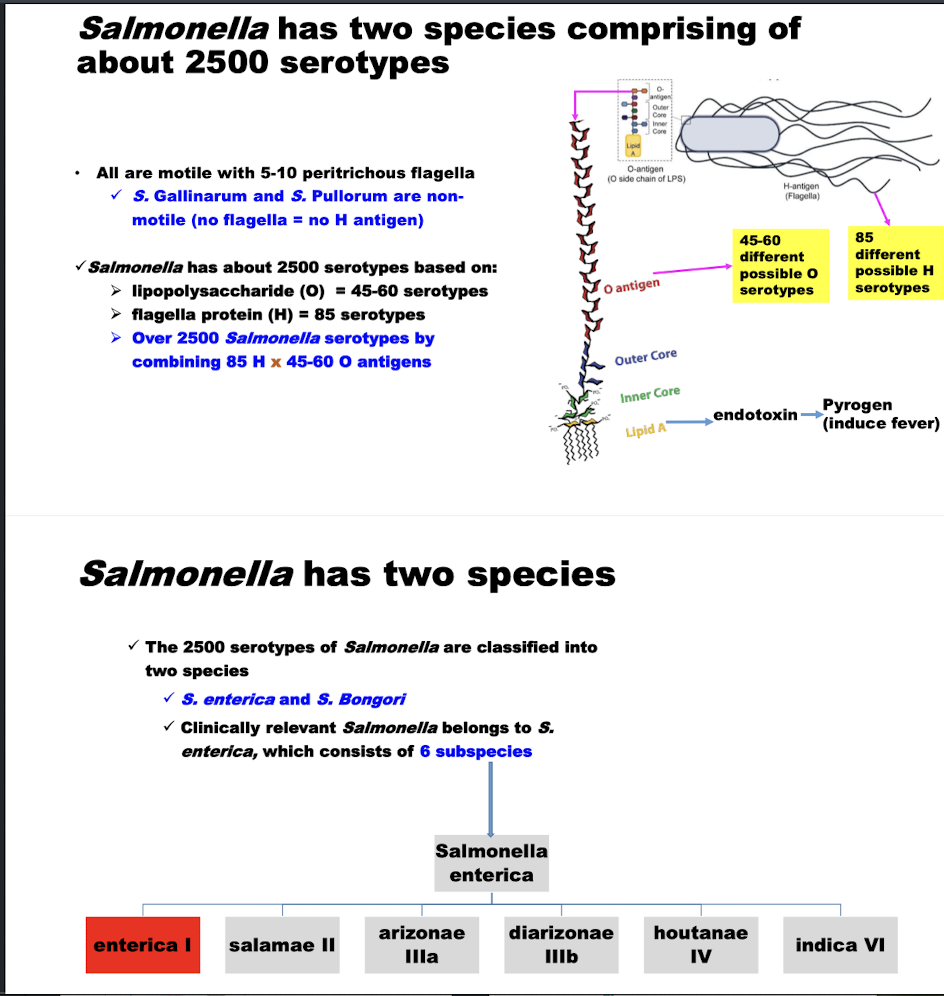 How many species of Salmonellas are there? What is important about them?