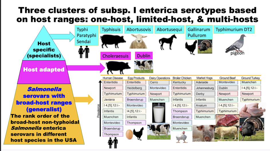 What are the 3 clusters of subspecies of Salmonella?