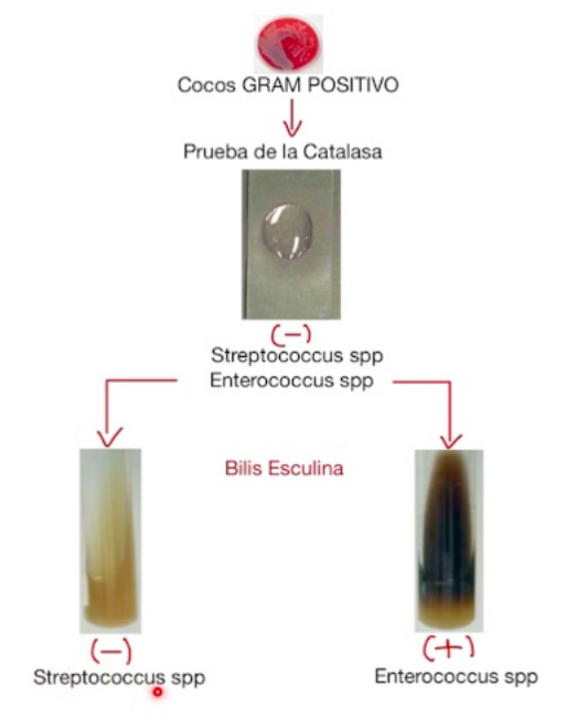 Diferenciar enterococcus (positiva) del streptococcus (negativa)