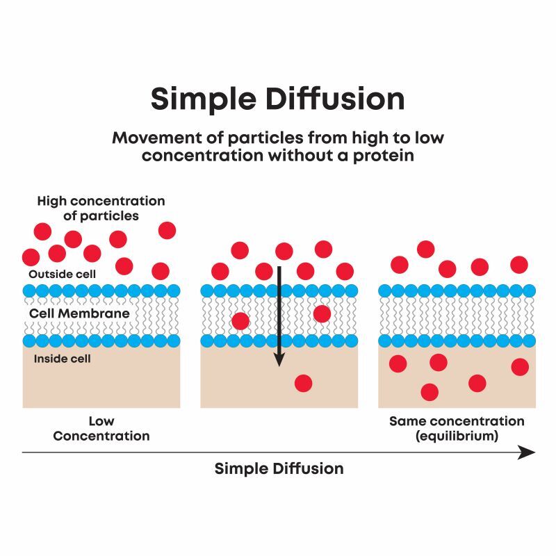 Movement of small nonpolar molecules down their concentration gradient directly through the lipid bilayer; no energy required.