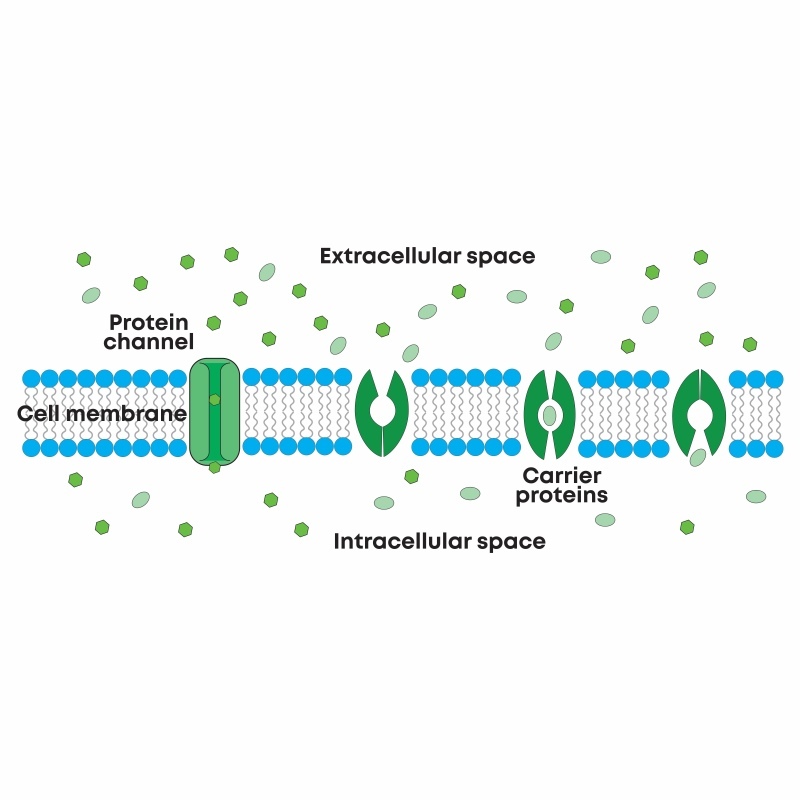 Carrier/channel proteins provide a pathway for specific solutes to move down their concentration gradient; no ATP required.