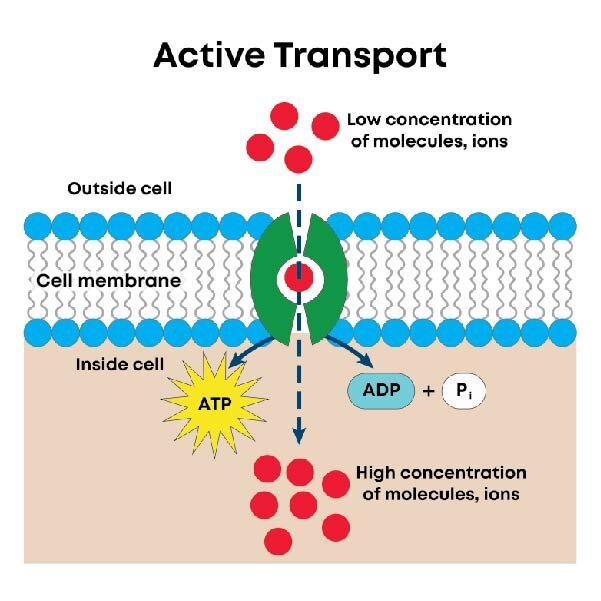 Moving solutes against their concentration gradient, requiring cellular energy or ATP.