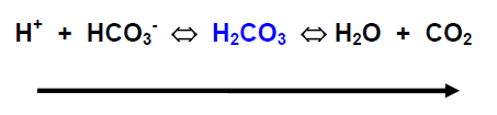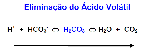 Na circulação pulmonar o HCO3- penetra no eritrócito, se combina com prótons, formando o H2CO3 e se dissocia em CO2 e água. O CO2 se difunde livremente através dos eritrócitos e epitélio alveolar.