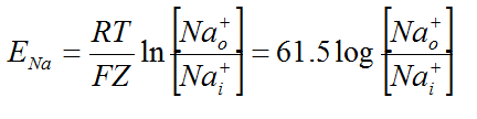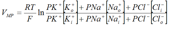 Equlilibrium potential – the membrane potential at which electrical and chemical gradient of individual ions are equal. For cations, o/i. For anions i/o.