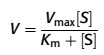 where V is the velocity of reaction, Vmax is the maximum velocity of reaction, Km