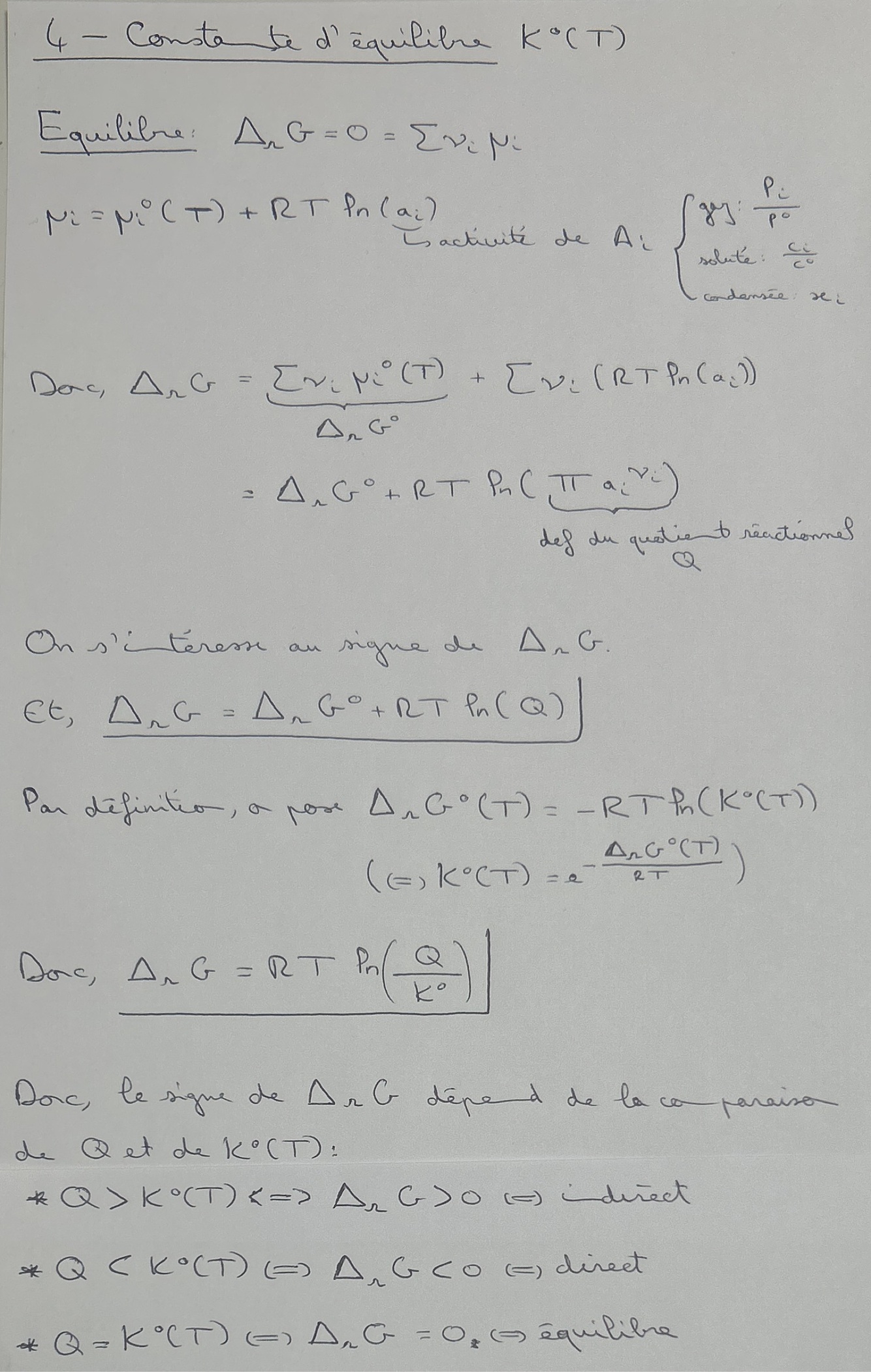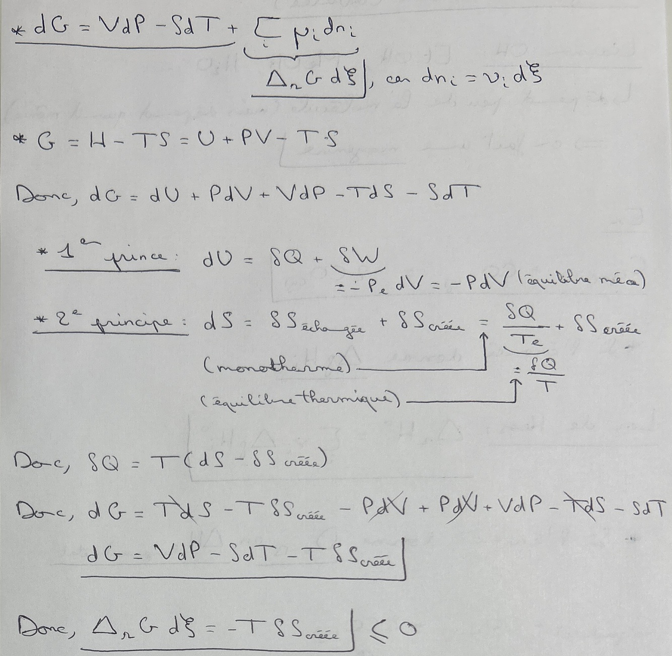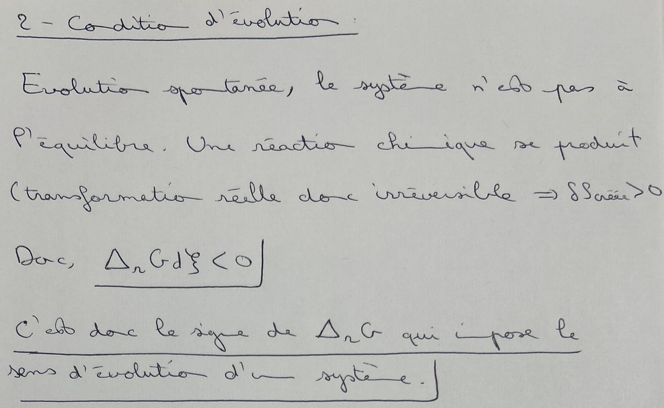 On ne répond donc jamais un sens d’évolution sans avoir donné le signe de ΔrG.