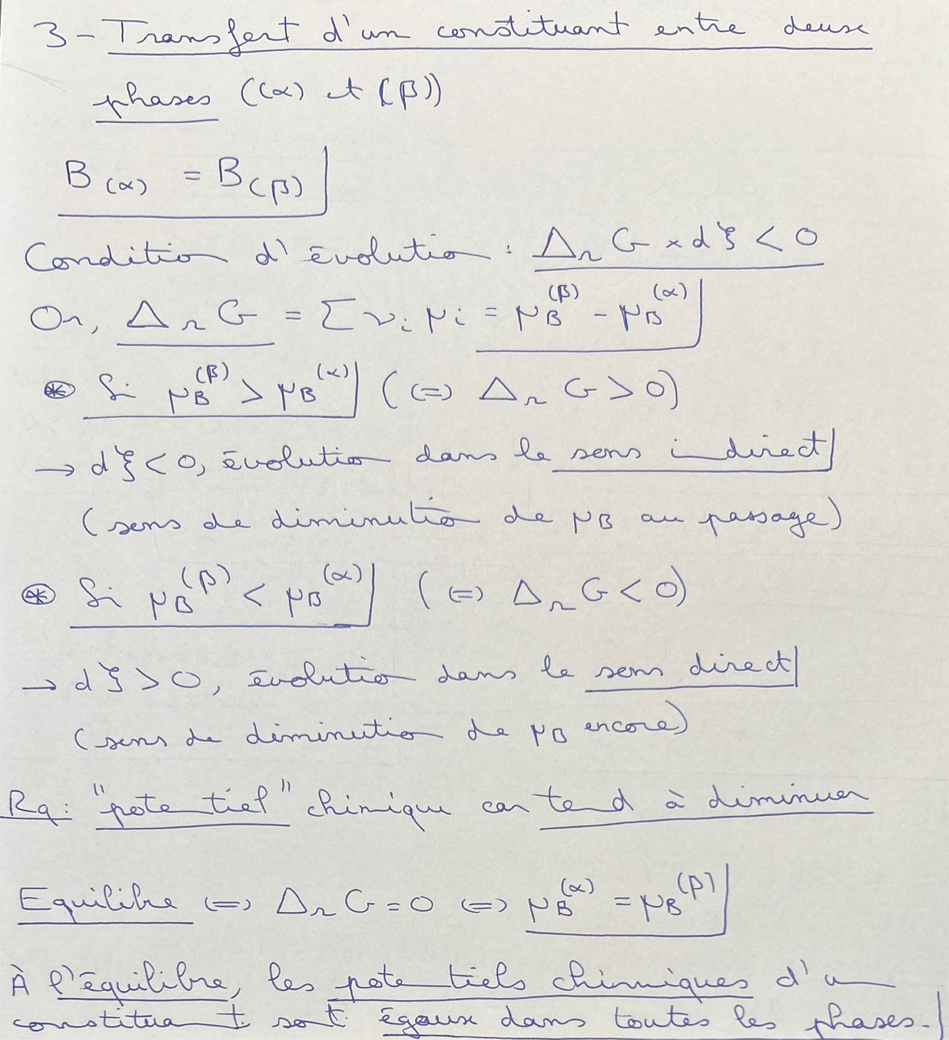 C’est une sorte de phénomène de modération : on cherche à avoir les même potentiels chimique (pour un constituant donné) dans toutes les phases, le système évolue donc dans le sens qui homogénéise, jusqu’à atteindre l’équilibre