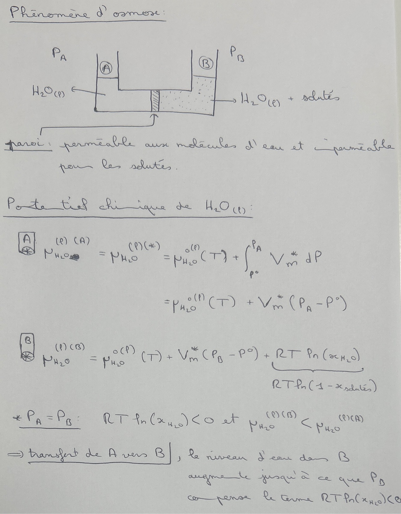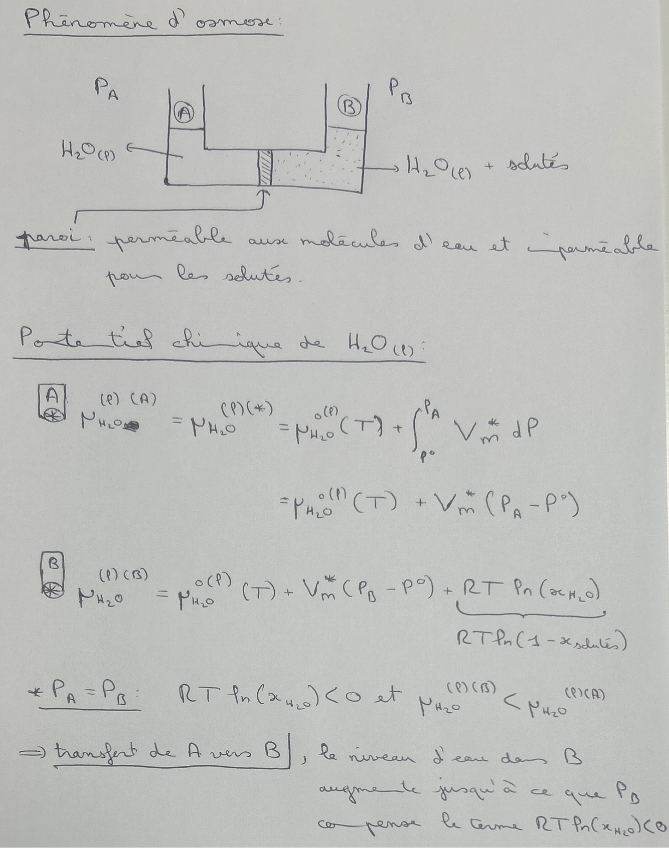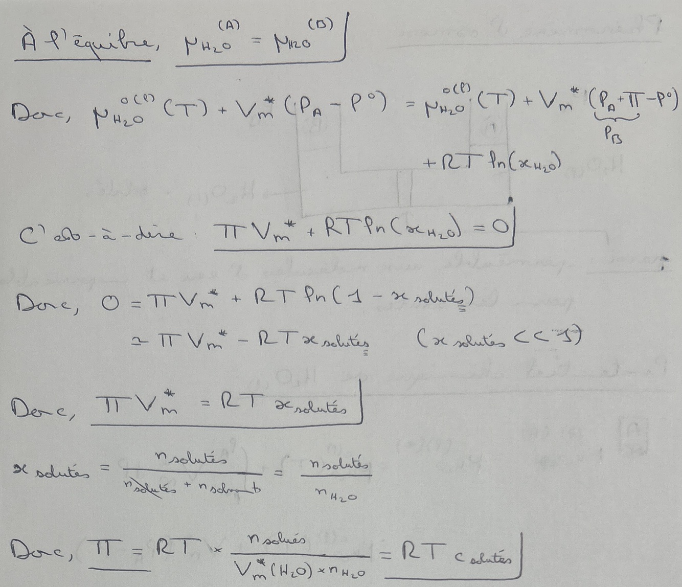 On appelle pression osmotique π la surpression à appliquer pour être à l’équilibre