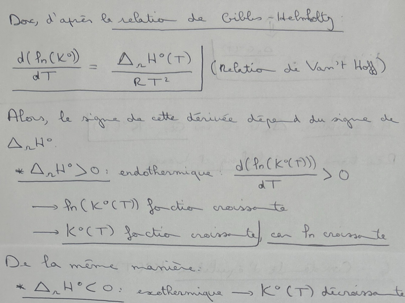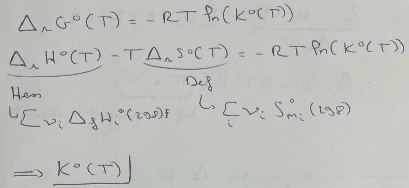 Comment trouver l’expression de K° à une température T, si l’énoncé donne les ΔfHi° et Smi° ?