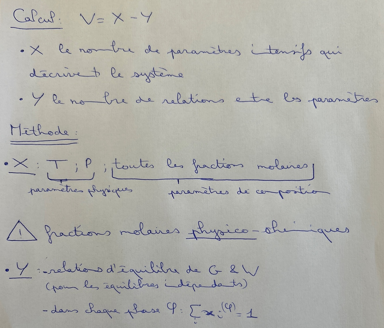 La variance est le nombre de paramètres intensifs que l’on peut fixer indépendamment pour déterminer un état d’équilibre du système