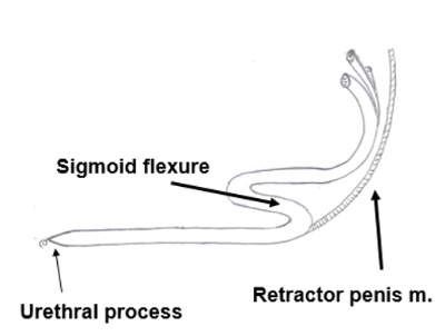 Length increased by straightening of sigmoid flexure as a result of relaxation of retractor penis muscle