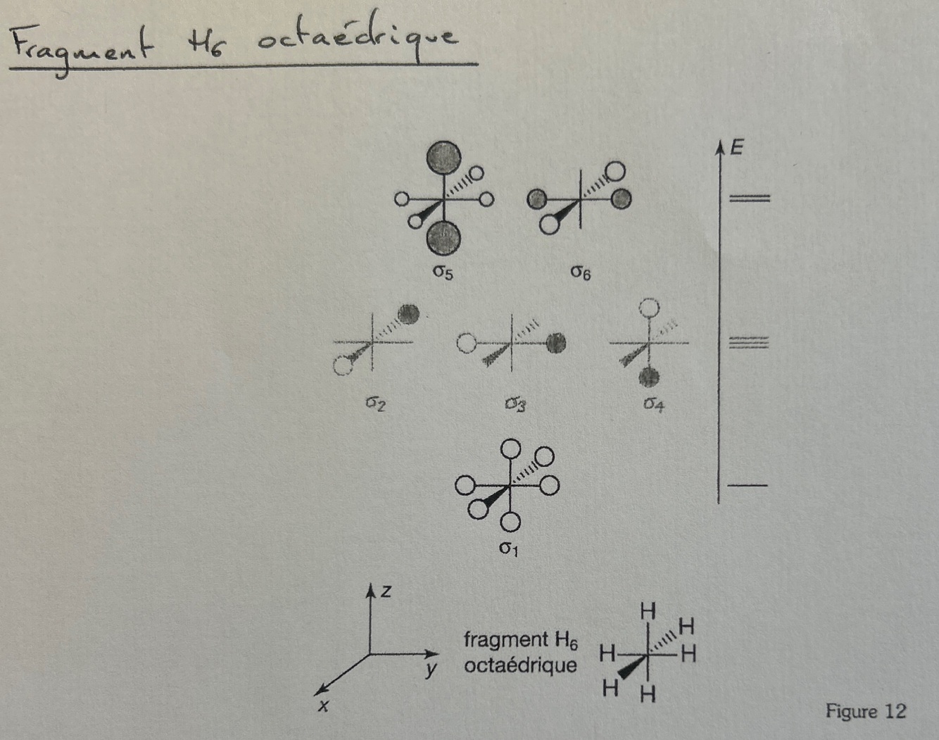 Pour un complexe octaédrique, un remplissage de 18 électrons correspond à aucune OM antiliante occupée et les 6 OM liantes et les 3 OM non liantes pleines