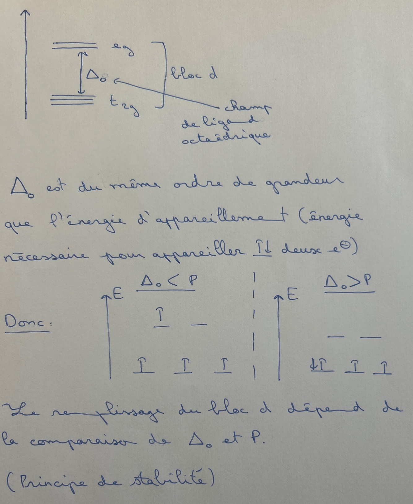 Si on est électronégatif, on tire vers le bas l’orbitale du haut du bloc d et donc on réduit Δo