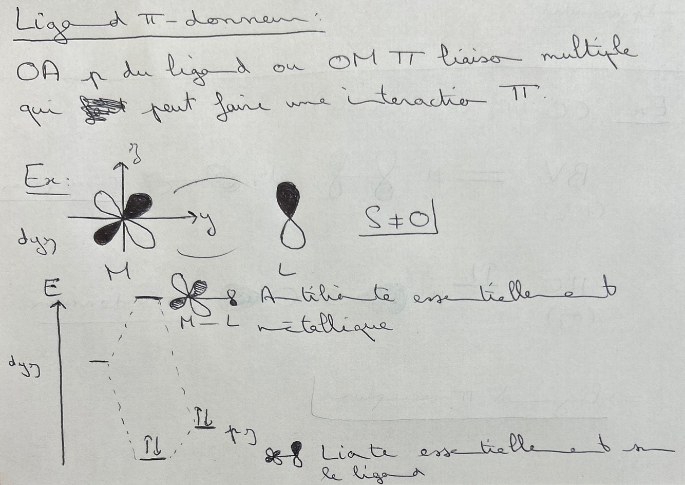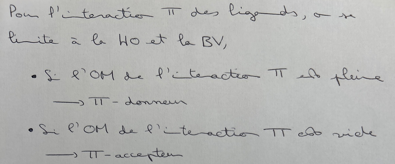 On appelle ligand π un ligand qui, en plus de l’interaction σ-donneur, réalise une interaction π
