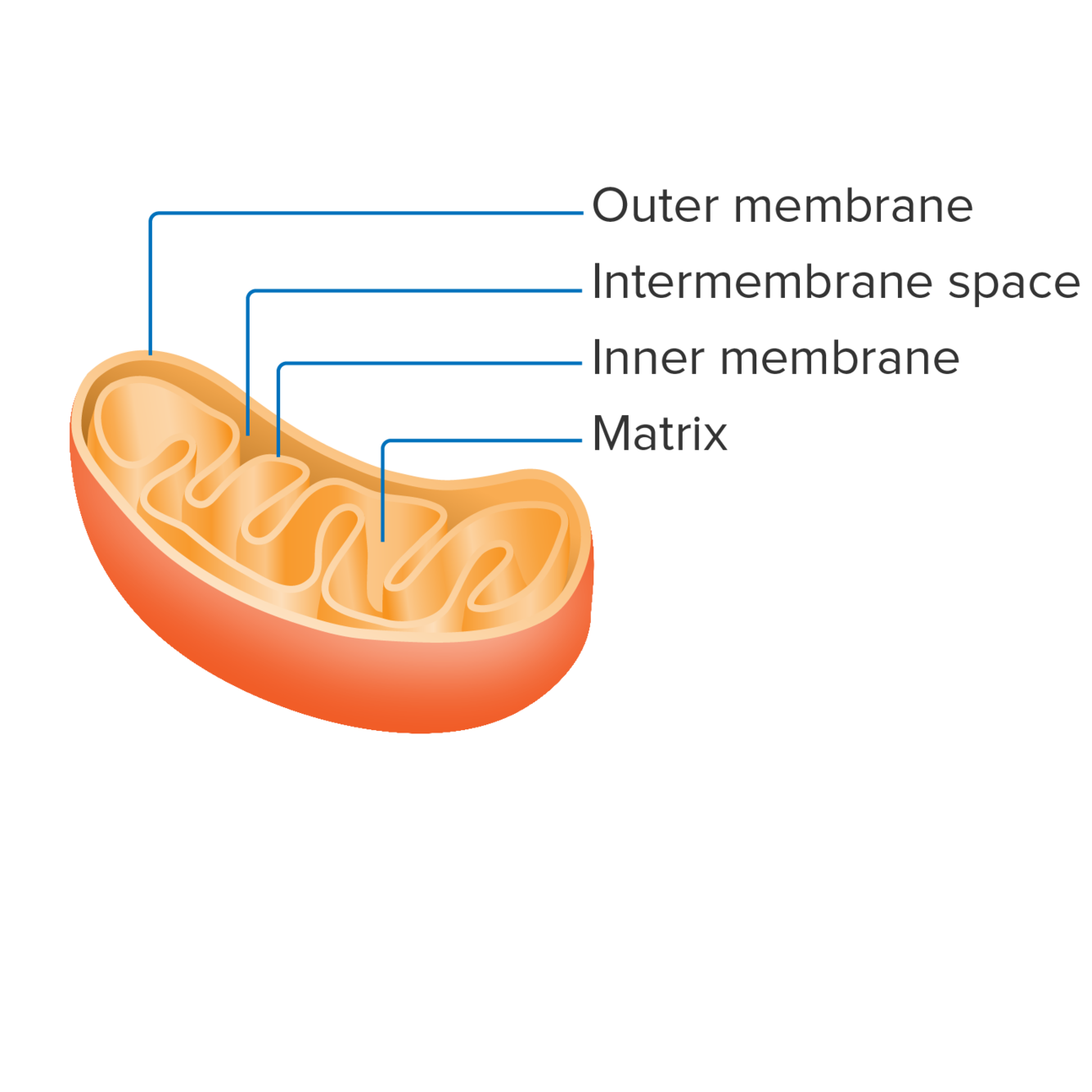 Mitochondria contain both an outer and an inner membrane. The intermembrane space is located between the two, while the mitochondrial matrix is the innermost space, bounded by the inner membrane.