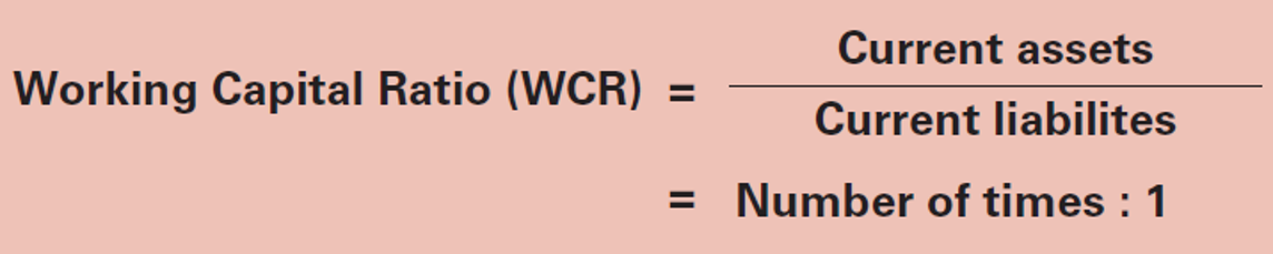 A liquidity indicator that measures the ratio of current assets to current liabilities, to assess the firm’s ability to meet its short-term debts as they fall due.