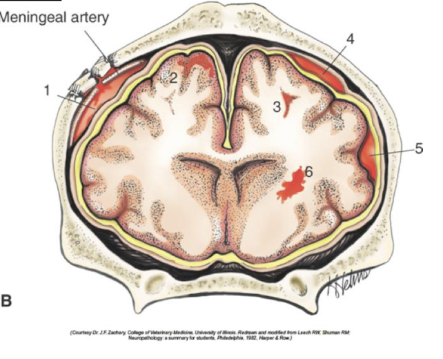 • Hemorrhage post boxing match-> fighter can be fine, then start feeling terrible and collapse. Meningeal arteries can cause alot of bleeding