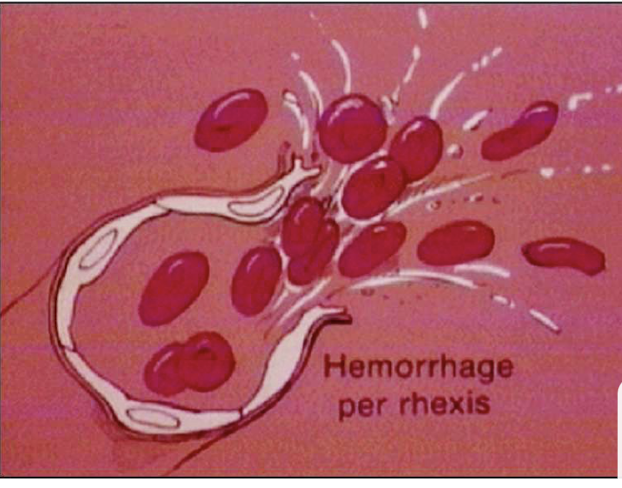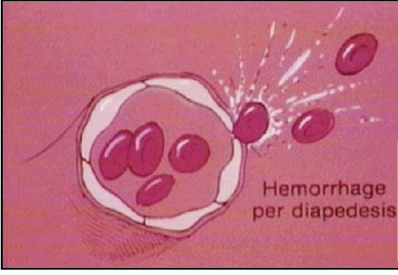 Hemorrhage due to a small defect in the vessel wall or rbc’s passing through the vessel wall in cases of