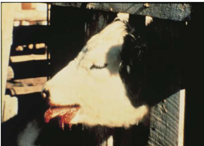 What is occuring in this image? What is a potential cause of this in humans? What about in Pigs?