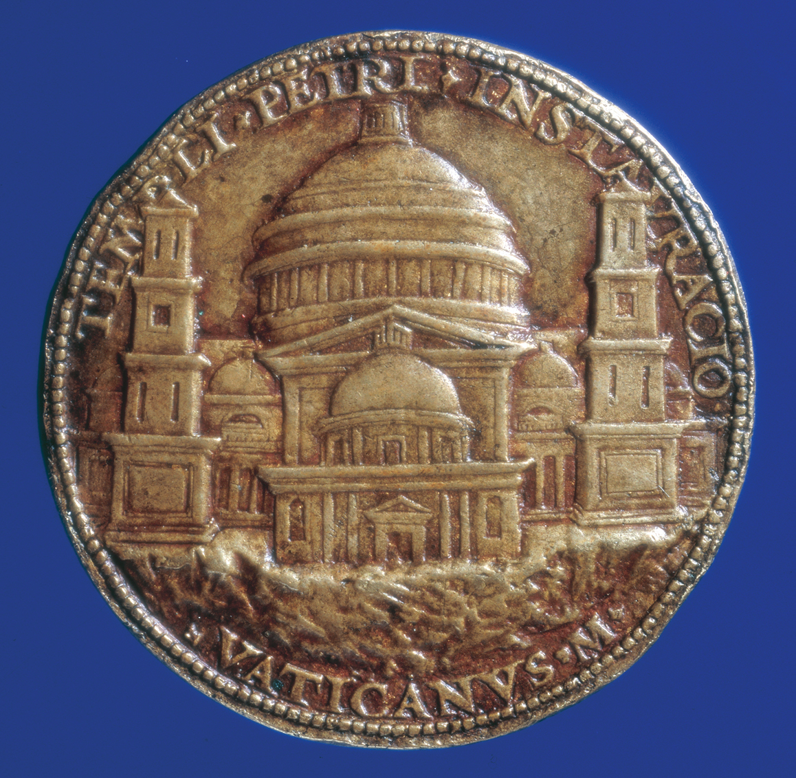 Plan and medal for New St. Peter’s by Bramante. 1505. Drawing Medal. Page 507.