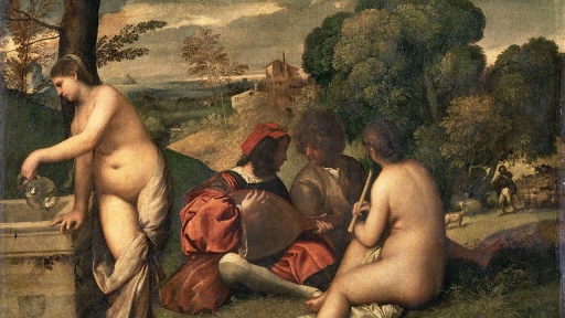 Pastoral Symphony by “Giorgione” da Castelfranco. 1508. Paint. Page 514.