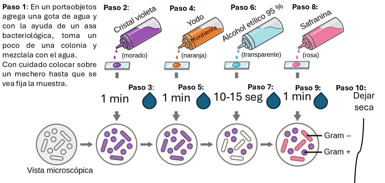 Pasos de la tinción de gram: (10)
