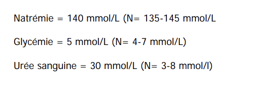 ainsi : chez un non-diabétique ou un diabétique avec insuline suffisante, la presseion efficace = 2x Na