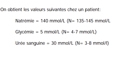 on mesure l’osmolalité de ce patient avec un osmomètre. quel résultat prédisez-vous