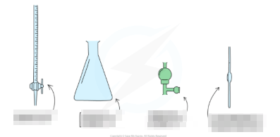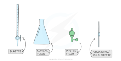 Pipettes are the most accurate way of measuring a fixed volume of liquid, usually 10 cm3 or 25 cm3.