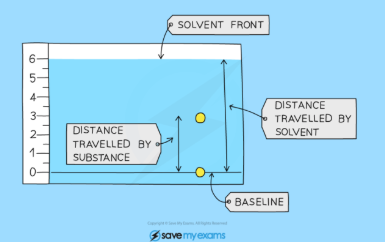 Retention factor = distance moved by compound ÷ distance moved by solvent.