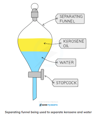 Used to separate two or more liquids that are miscible with one another (e.g. ethanol and water from a mixture of the two).