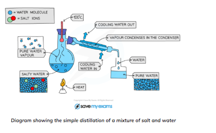 Used to separate a liquid and soluble solid from a solution (e.g. water from a solution of salt water) or a pure liquid from a mixture of liquids.