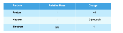 State the relative charges and approximate relative masses of protons, neutrons and electrons