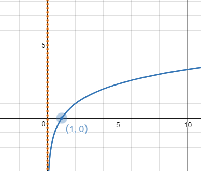 The domain is x>0. The curve approaches a vertical asymptote on at x=0.