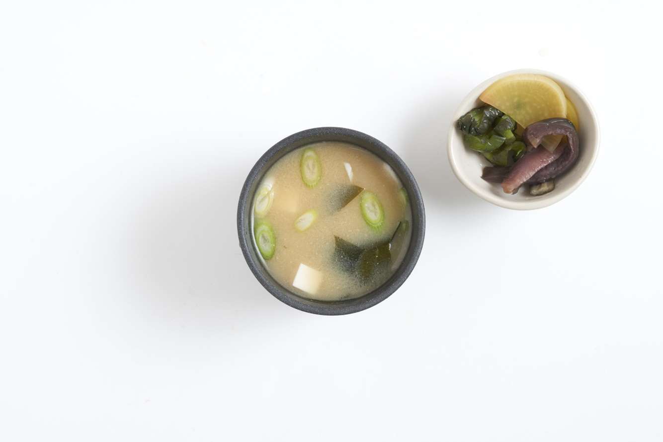 miso soup and japanese pickles