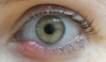 Hordeolum “STYE” (hord-e-ulum) = painful abscess at eyelid margin