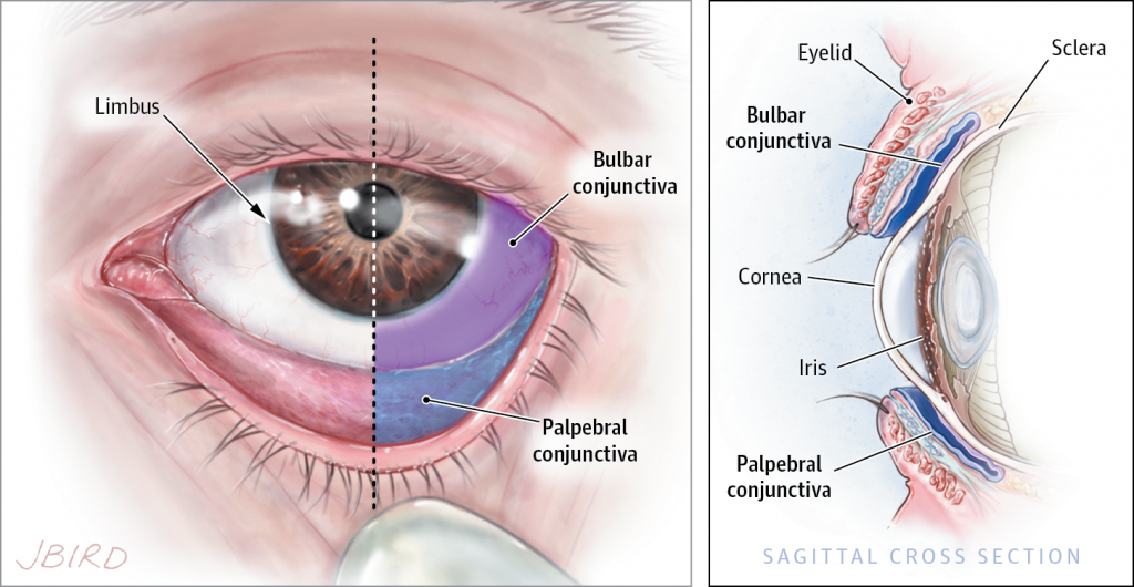 Pterygium “eye web” = elevated, superficial fleshy, triangular mass