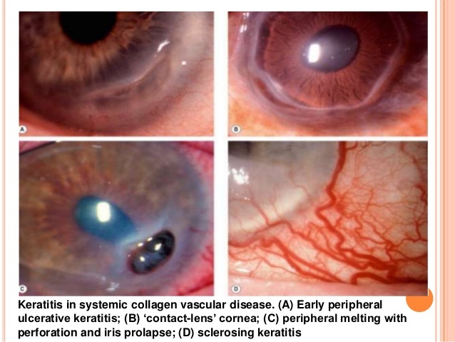 Patient will present with → eyelid changes: crusting, scaling, red-rimming of eyelid and eyelash flaking along with dry eyes and associated seborrhea and rosacea