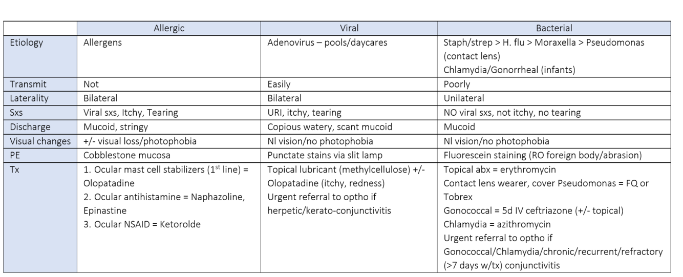 Patient will present with → purulent (yellow) discharge, crusting, usually worse in the morning