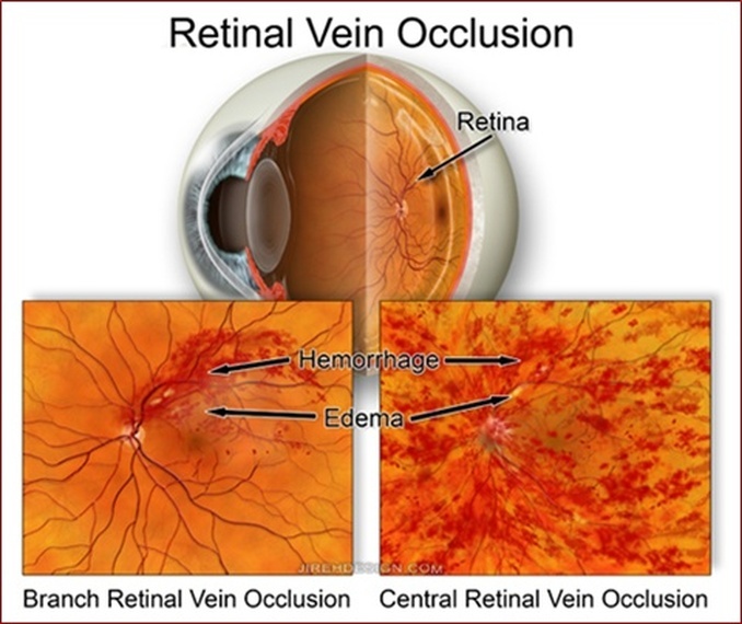 Central Retinal Vein Occlusion (CRVO) = Retinal vein thrombus => fluid back up in retina