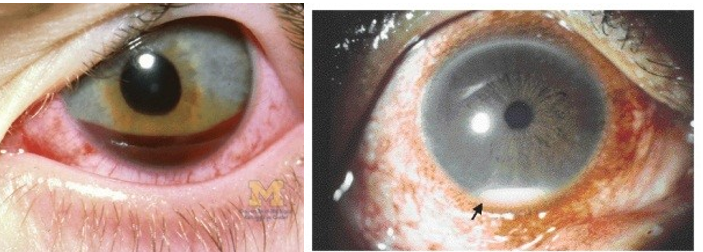 Patient will present with → history of mild trauma followed by sudden onset of eye pain, photophobia, tearing, foreign body sensation, blurring of vision, and/or conjunctival injection