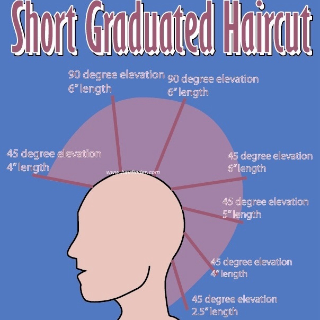 A haircut that is graduated, wedged or stack shaped at the perimeter. Usually cut in a 45 degree angle.