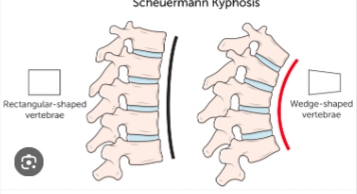 - anterior wedgingof the vertebral bodies of 5 deg or more (in 3 or omre consecuative vertebral bodies)