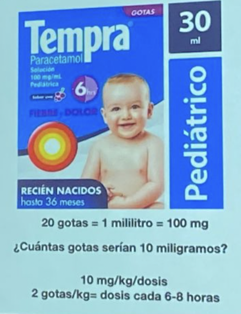 -paracetamol: 10-15 mg/kg/dosis cada 6-8 hrs