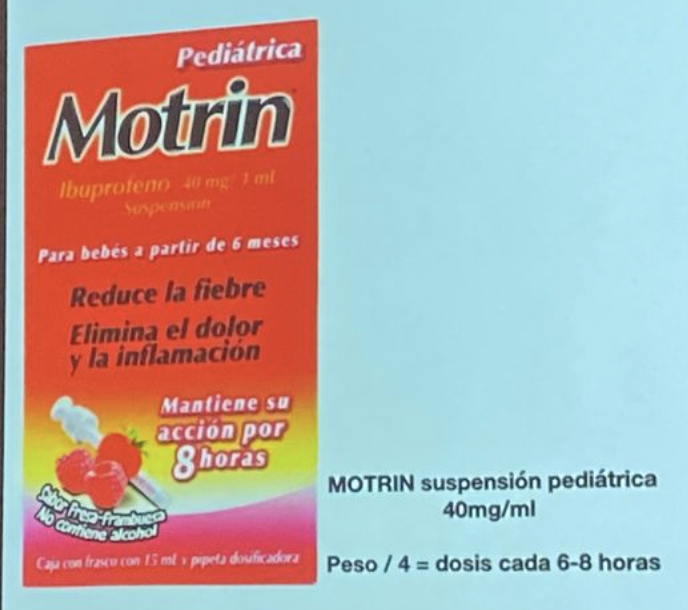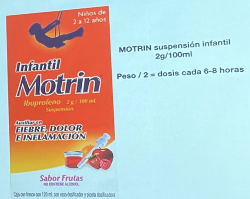 -ibuprofeno: 5-10 mg/kg/dosis cada 6-8 hrs
