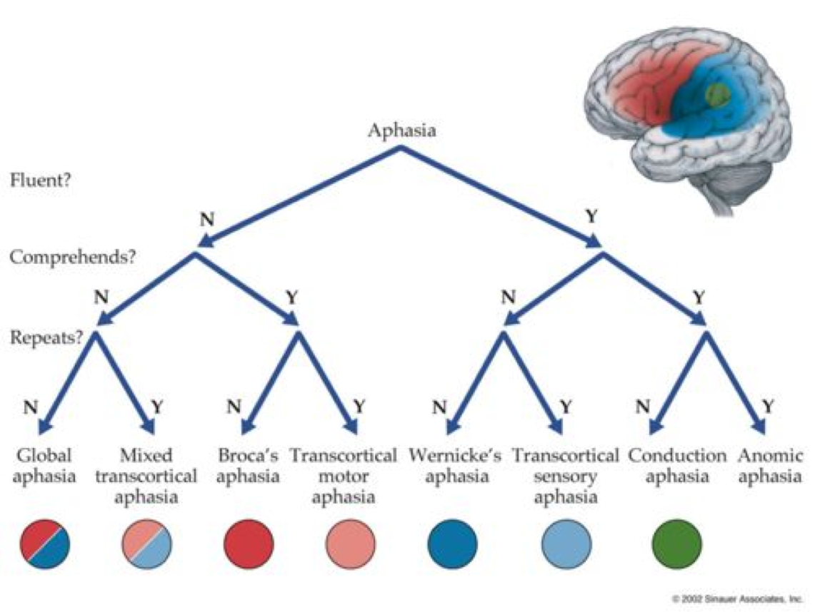 Describe the behavioral characteristics of Wernicke’s and Broca’s Aphasia in terms of fluency and comprehension.