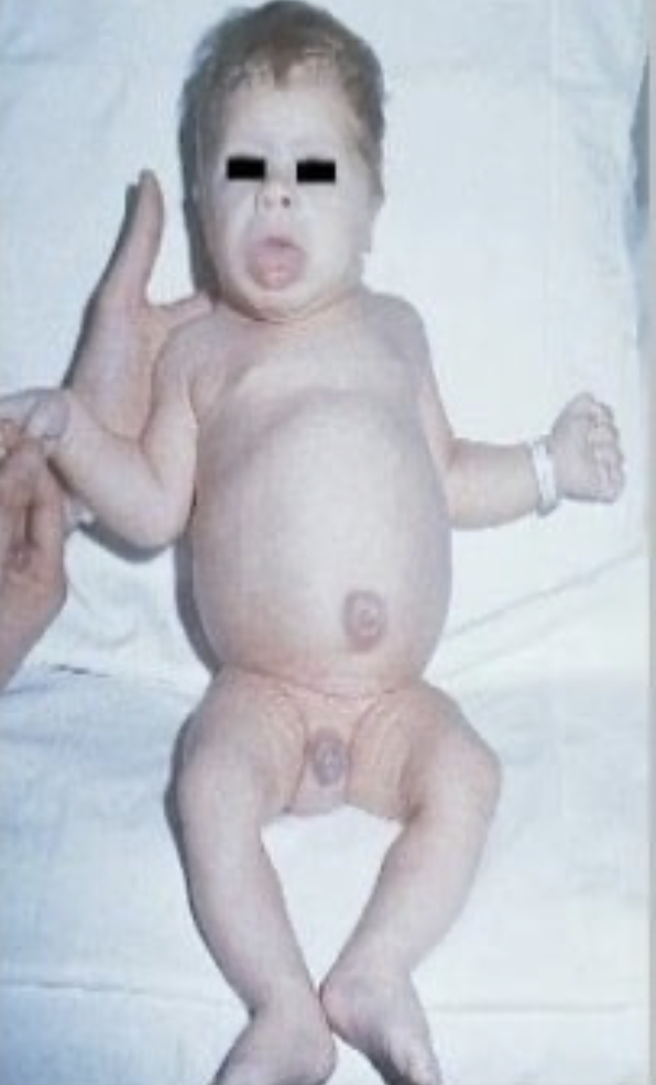 TOF. Babies look normal at birth but develop manifestations within the next two weeks when effects may already be irreversible